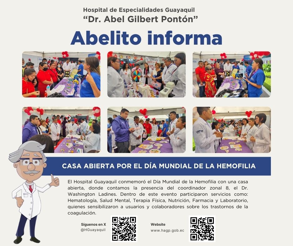 El Hospital Guayaquil conmemoró el Día Mundial de la Hemofilia con una casa abierta, donde contamos la presencia del coordinador zonal 8, el Dr. Washington Ladines. Dentro de este evento participaron servicios com ......