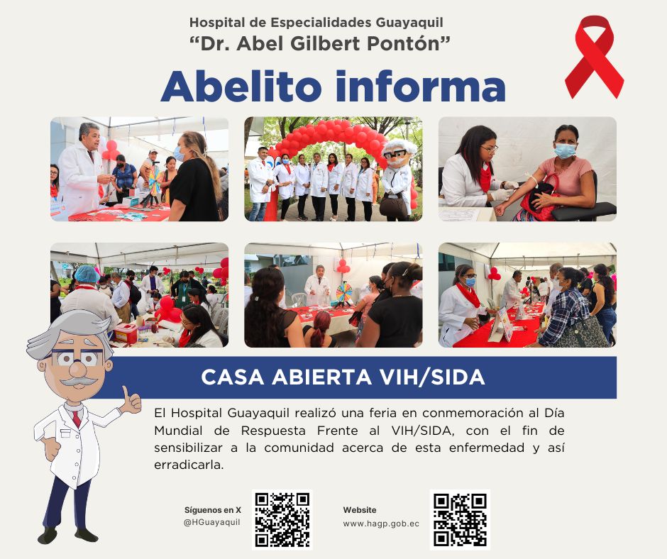 El Hospital Guayaquil realizó una feria en conmemoración al Día Mundial de Respuesta Frente al VIH/SIDA, con el fin de sensibilizar a la comunidad acerca de esta enfermedad y así erradicarla.