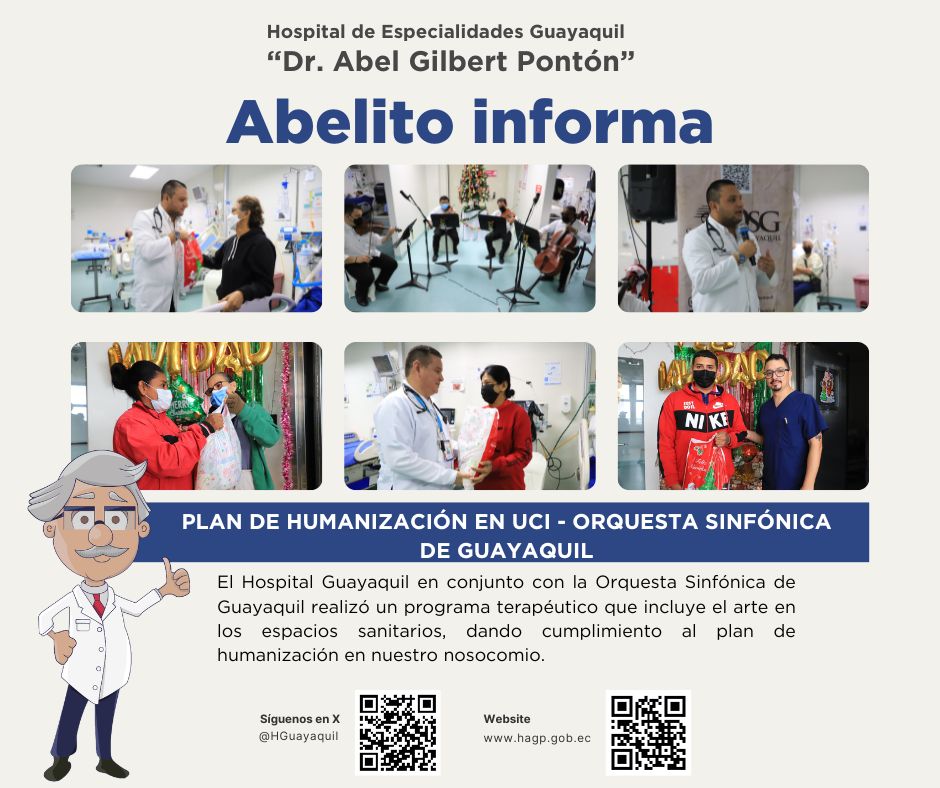 El Hospital Guayaquil en conjunto con la Orquesta Sinfónica de Guayaquil realizó un programa terapéutico que incluye el arte en los espacios sanitarios, dando cumplimiento al plan de humanización en nuestro nosocomio.